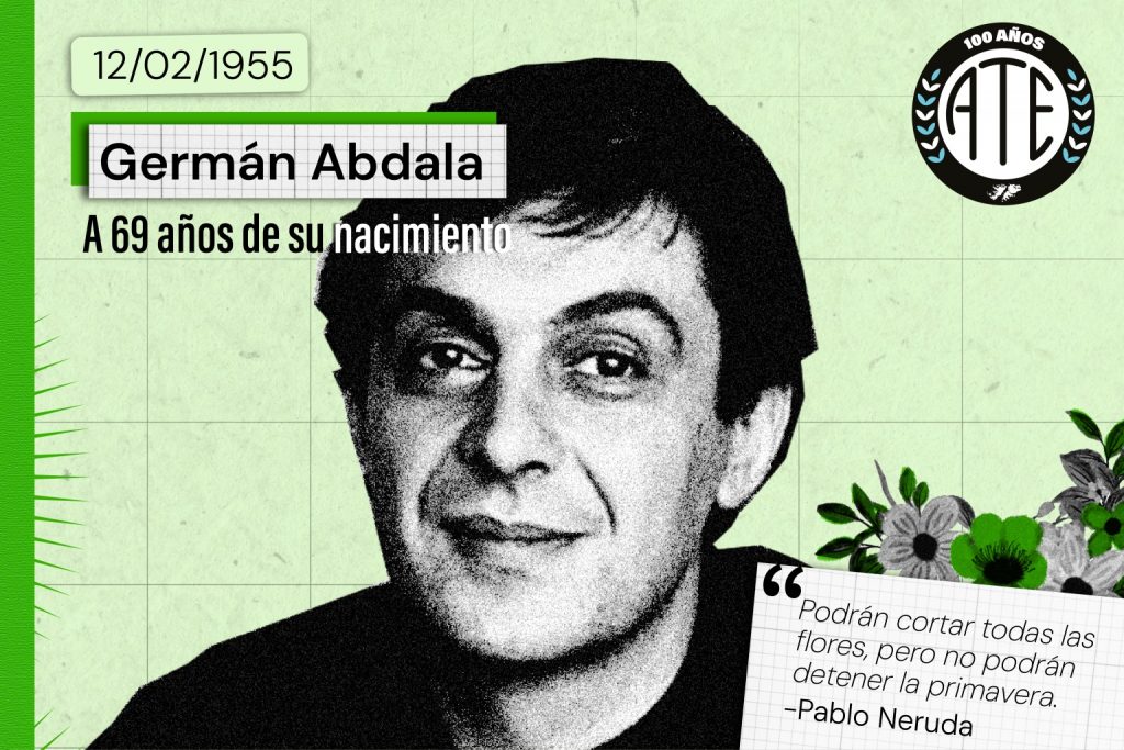 Este 12 de febrero de 2024 cumpliría 69 años el histórico compañero y dirigente de la Asociación Trabajadores del Estado (ATE) y de la Central de Trabajadores de la Argentina (CTA), Germán Abdala.