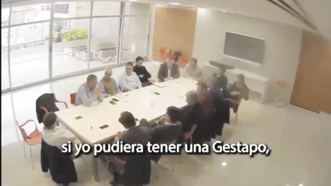 Lo que se ve en la grabación es la reunión que en junio de 2017 protagonizaron el exministro de Trabajo del gobierno bonaerense, Marcelo Villegas; y el intendente de La Plata, Julio Garro, junto con otros exfuncionarios de la administración de Vidal, espías y empresarios, en la sede porteña del Banco Provincia, a metros del Cabildo.