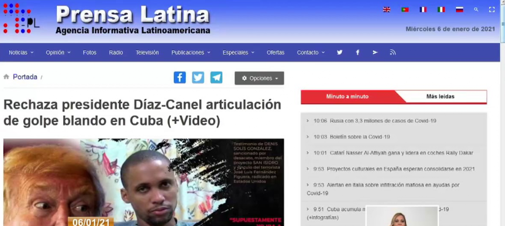 Díaz Canel además dijo que medios de comunicación con supuesta financiación independiente intoxican constantemente las redes sociales con informaciones sobre Cuba, de acuerdo con el material.