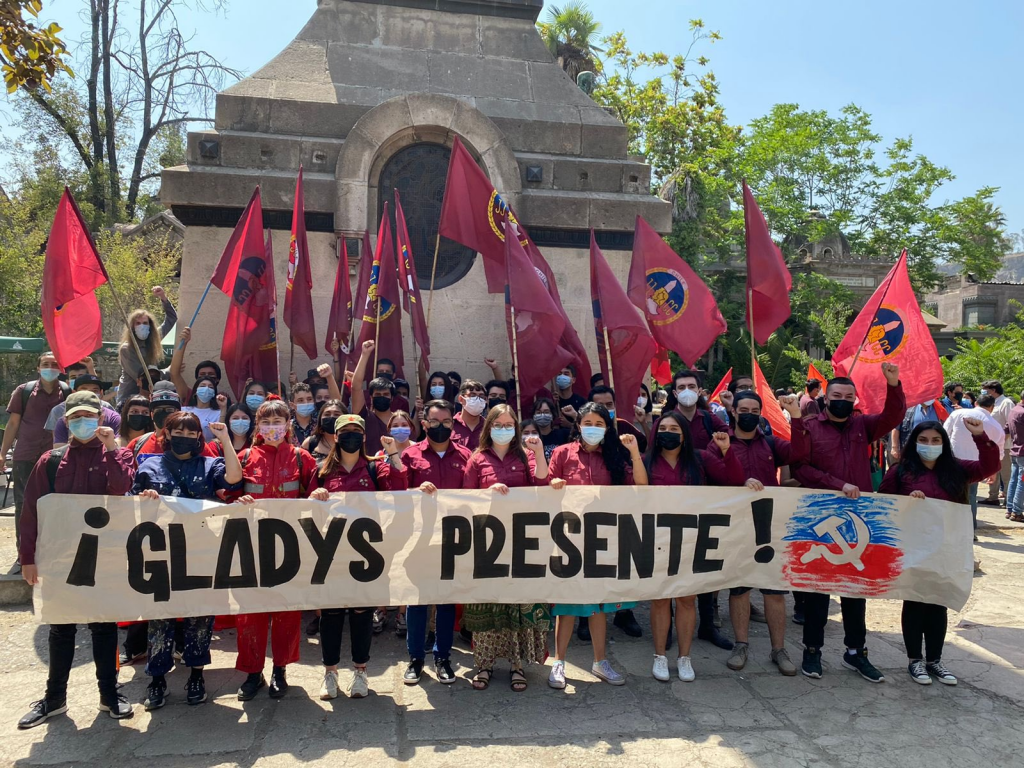 Militantes del Partido Comunista y de las Juventudes Comunistas rindieron un sentido homenaje a Gladys Marín, la histórica líder comunista chilena, después de que vándalos de ultraderecha rayaran su mausoleo en el Cementerio General el pasado fin de semana.