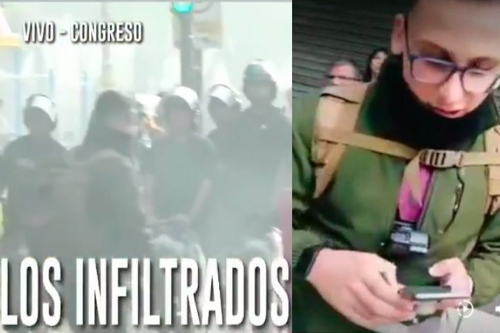 A las 18:06 de ese miércoles, Crónica TV registró en vivo los movimientos del supuesto periodista, mientras en el videograph aseveraban: “LOS INFILTRADOS DE SIEMPRE”. “La mochila que lleva es de Gendarmería”, acotaba desde el piso uno de los periodistas; mientras otro agregaba: “Es un caradura”. La cámara del canal perdió al sospechoso cuando se ubicó detrás de una formación pretoriana de la Policía Federal en medio de la avenida.
