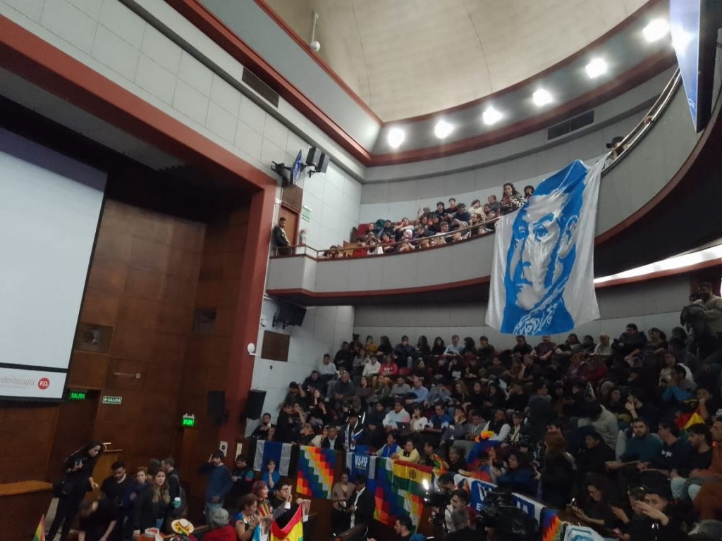 En un cálido encuentro en la sede de la Facultad de Odontología de la UBA, el martes 25 de julio, el ex presidente de Bolivia Evo Morales y el precandidato a presidente por Unión por la Patria Juan Grabois, expusieron sobre la soberanía de los recursos energéticos, la planificación de una política de tierra, techo y trabajo, y la necesidad urgente de poner en pie la Patria Grande ante la avanzada del Comando Sur.
