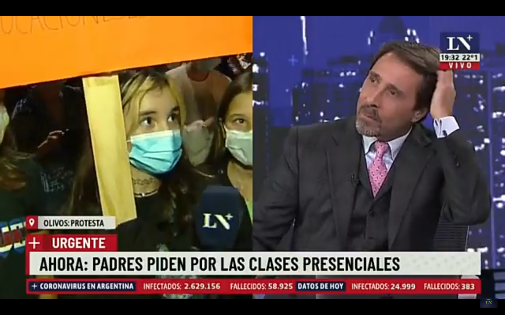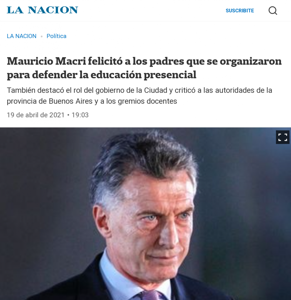 Son los militantes del macrismo (JxC), radicalismo y el resto de la derecha que presionan por las clases presenciales. Minoritarios en la comunidad educativa pública, no así en la educación privada de clase alta. Cuentan con los grandes medios de información, alineados al macrismo, a su disposición las 24hs. Su política es exigir la presencialidad a toda costa, aún ante el aumento sideral de casos de contagio. Producto de la mayor circulación a partir de las clases presenciales.