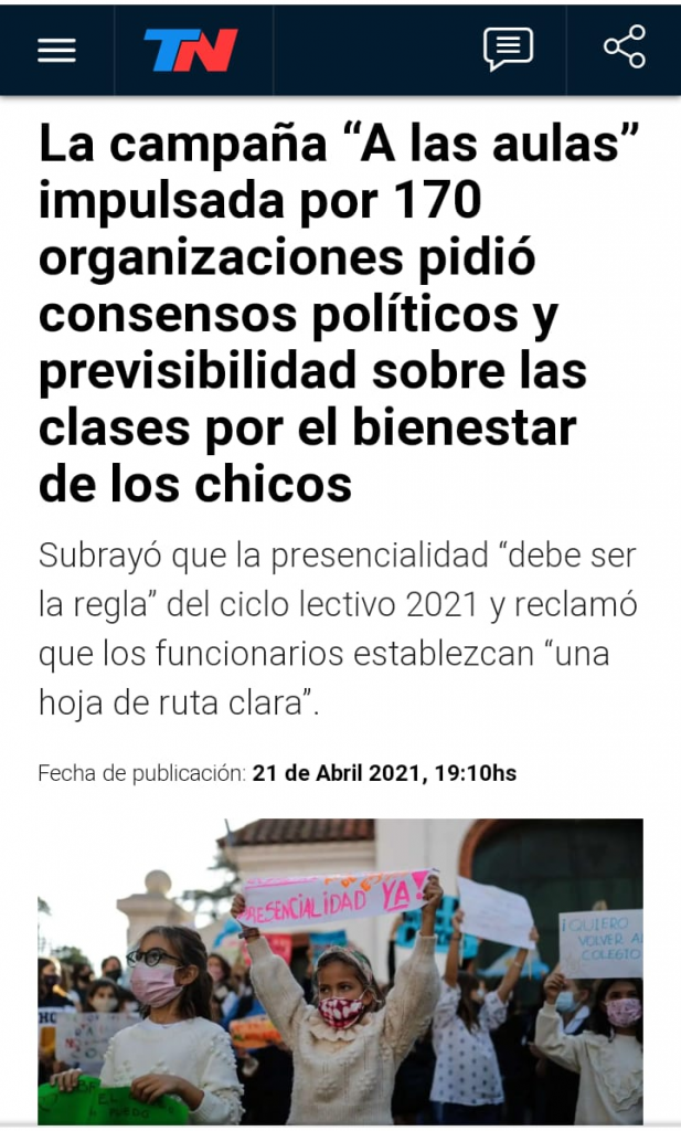 Una pata son los capitalistas (empresarios) argentinos que se agrupan en «A las Aulas», la otra pata son los militantes macristas de «Padres Organizados». El poder económico (AA- medios hegemónicos) y su grupo de choque (Padres Org- JxC). Ataques a la política sanitaria del gobierno y priorizar la ganancia del capital por sobre la salud.