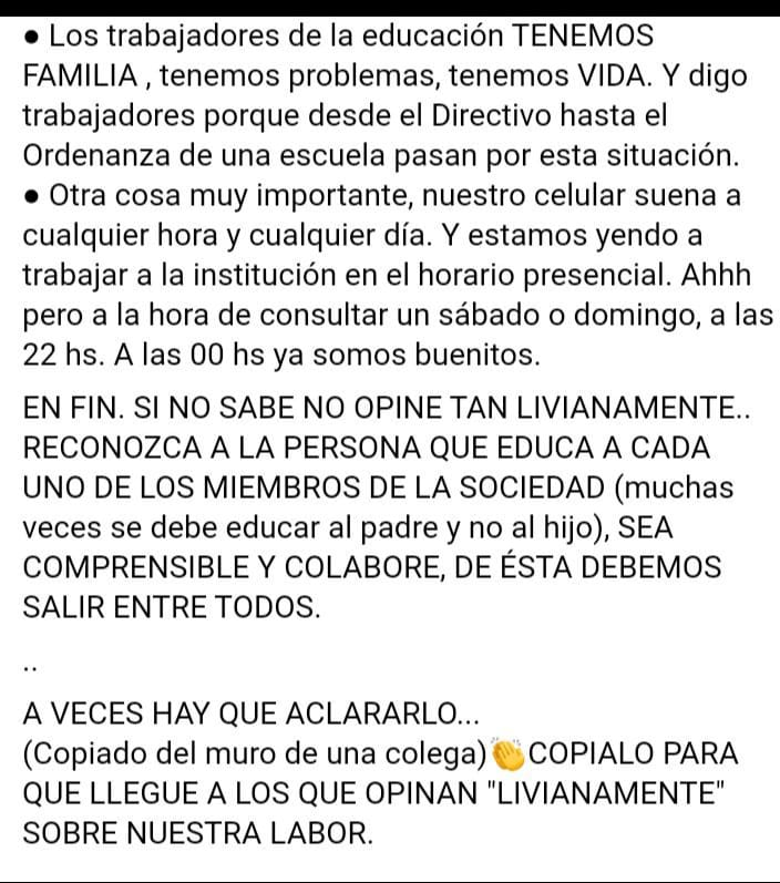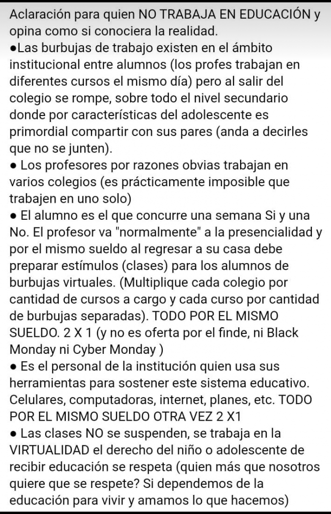 Lo principal para ellos es actividad laboral de sus empleados y clases presenciales (como depósito guardería de niños y no como proceso de aprendizaje. La salud no es prioridad.