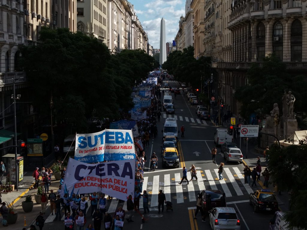 Miles de docentes y trabajadores de diversos sectores se concentraron para exigir al Gobierno Nacional el cese del ajuste sobre la educación pública y los derechos laborales.