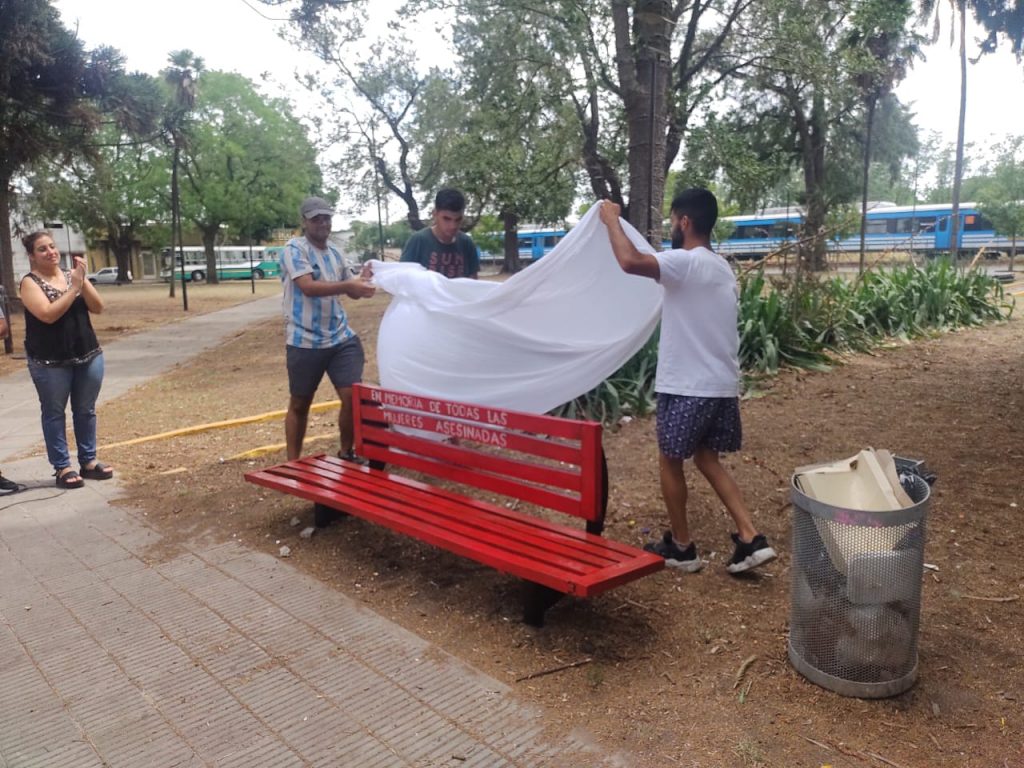 El miércoles 30 de noviembre en la Plaza Martín Iraola en 2 e/530 y 531 del barrio de Tolosa, en memoria de las mujeres victimas de la violencia de genero, se inauguro un banco rojo.